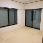 6畳の和室リフォームです。 天井や壁が本格的な和風の造りでした(敷目天井と真壁工法)が、 洋室のように使用したいため、天井・壁・床を下地からやり直し、出入口の戸襖は洋風引戸にしました。 床は琉球畳のような見た目のDAIK […]