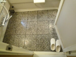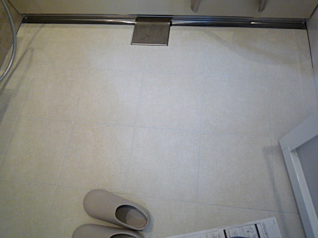 新しい床もタイルです。白いタカラスタンダードのタイル床が素敵です。