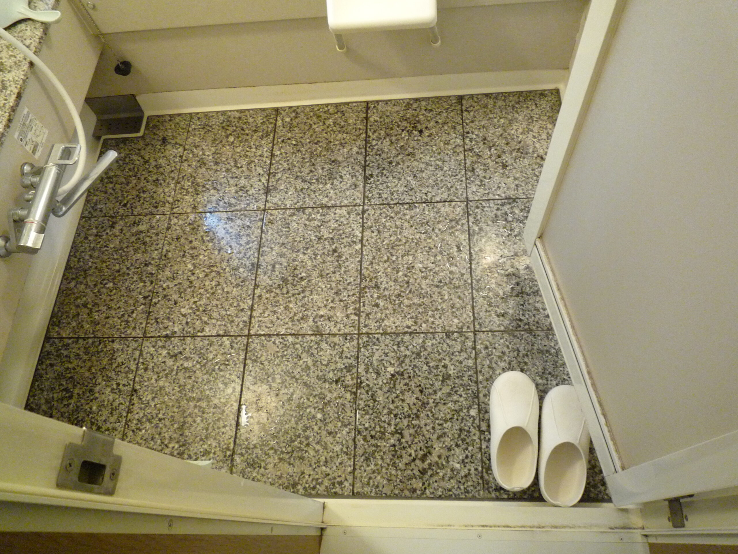 四角い形状の大きい浴槽でした。排水栓はゴム栓でした。