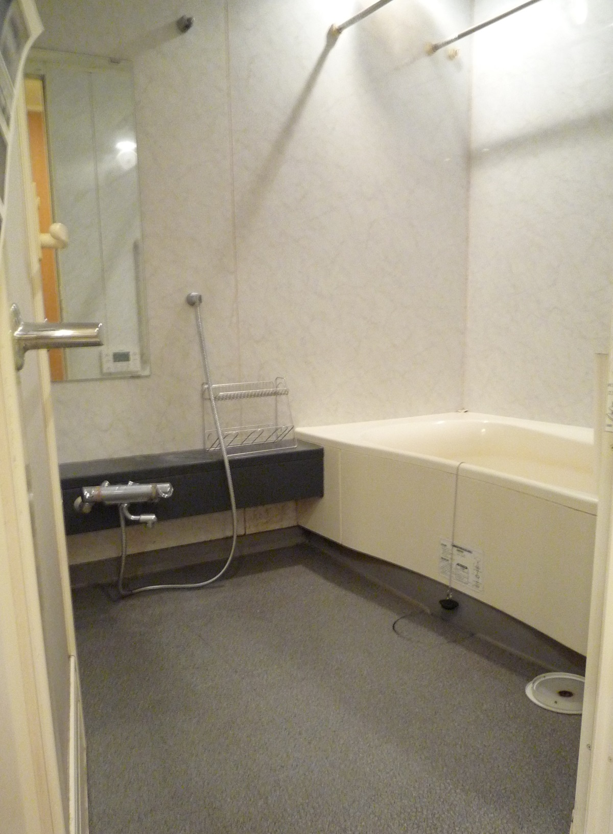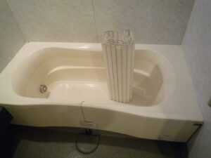 浴槽はFRP素材、ゴム排水栓、巻きフタでした。