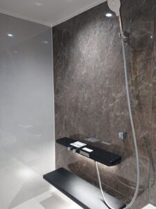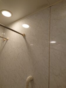 とても綺麗な状態でしたが、壁パネルはパネル同士の継ぎ目がやや広くカビや汚れが付着しやすい設計でした。