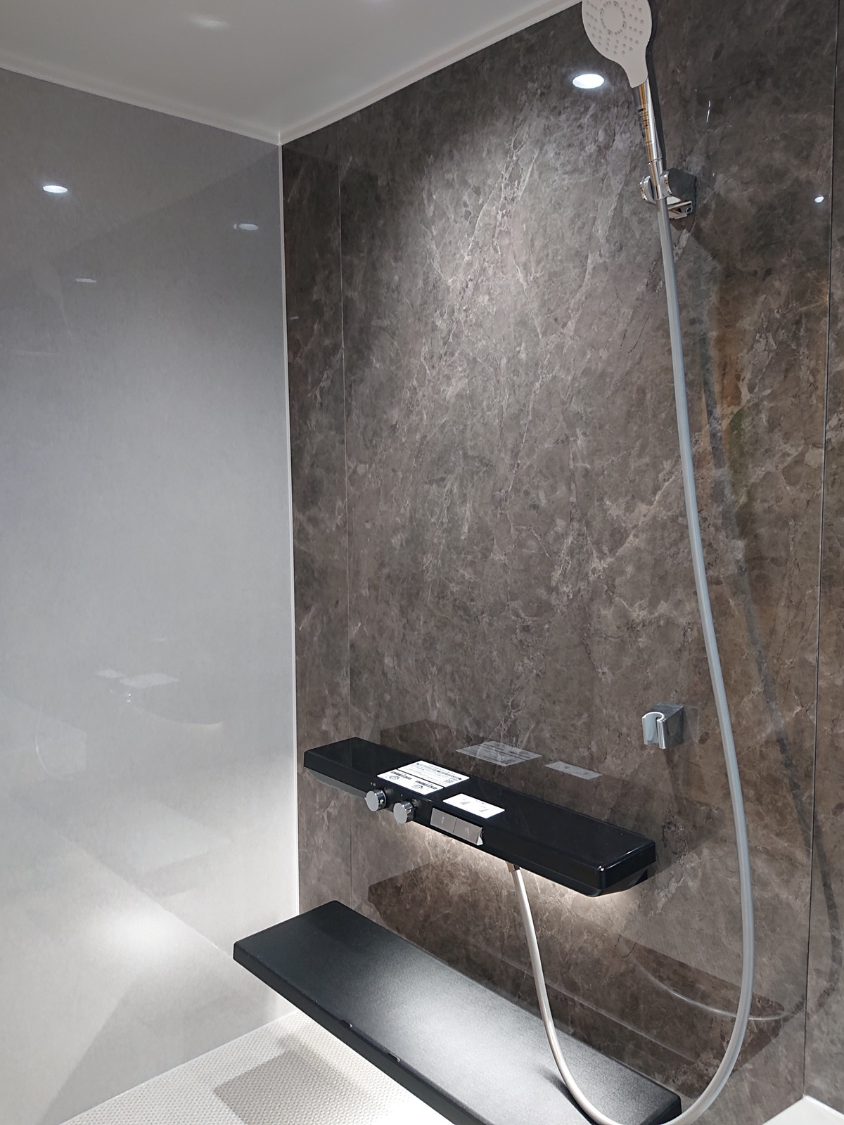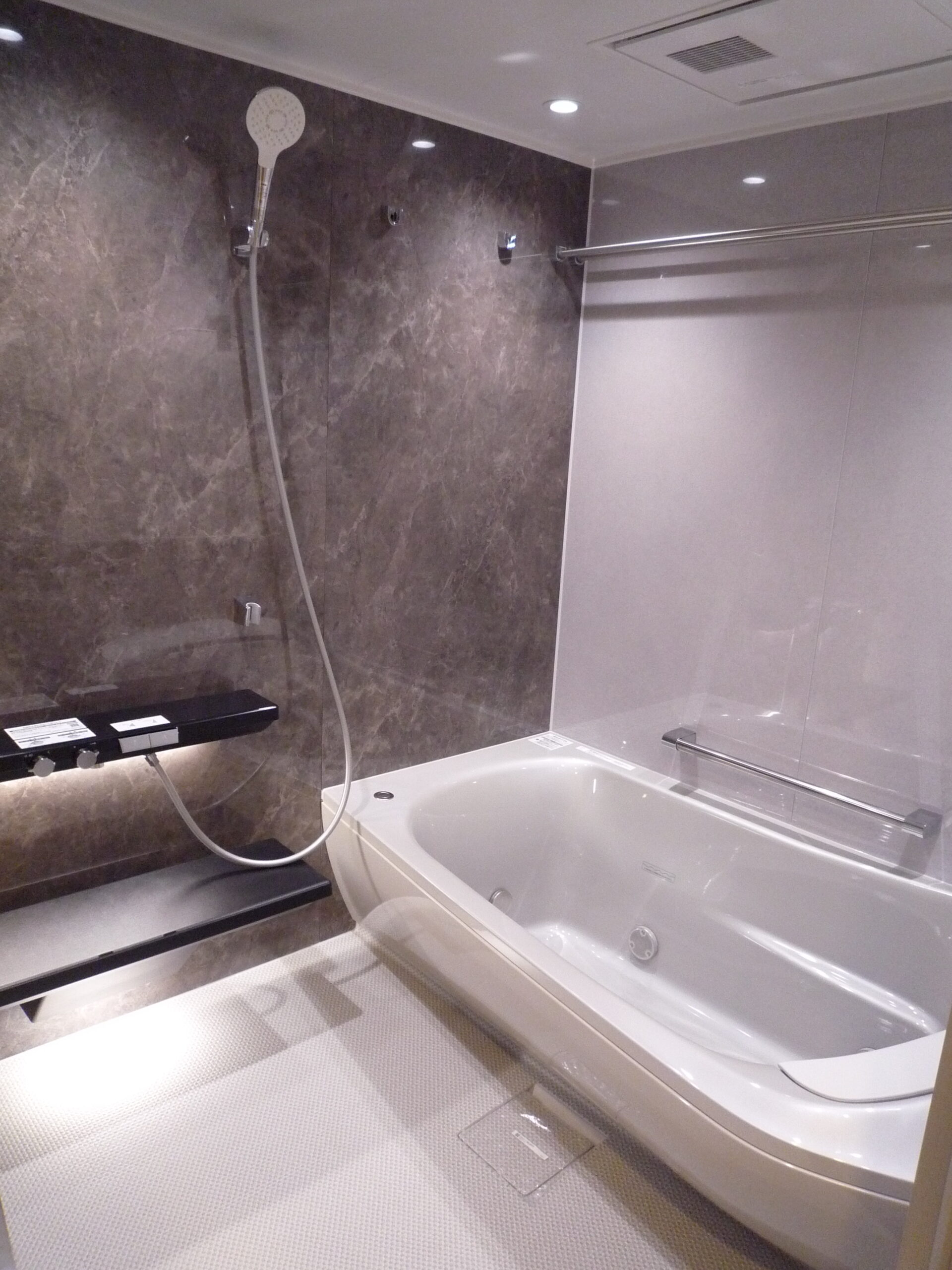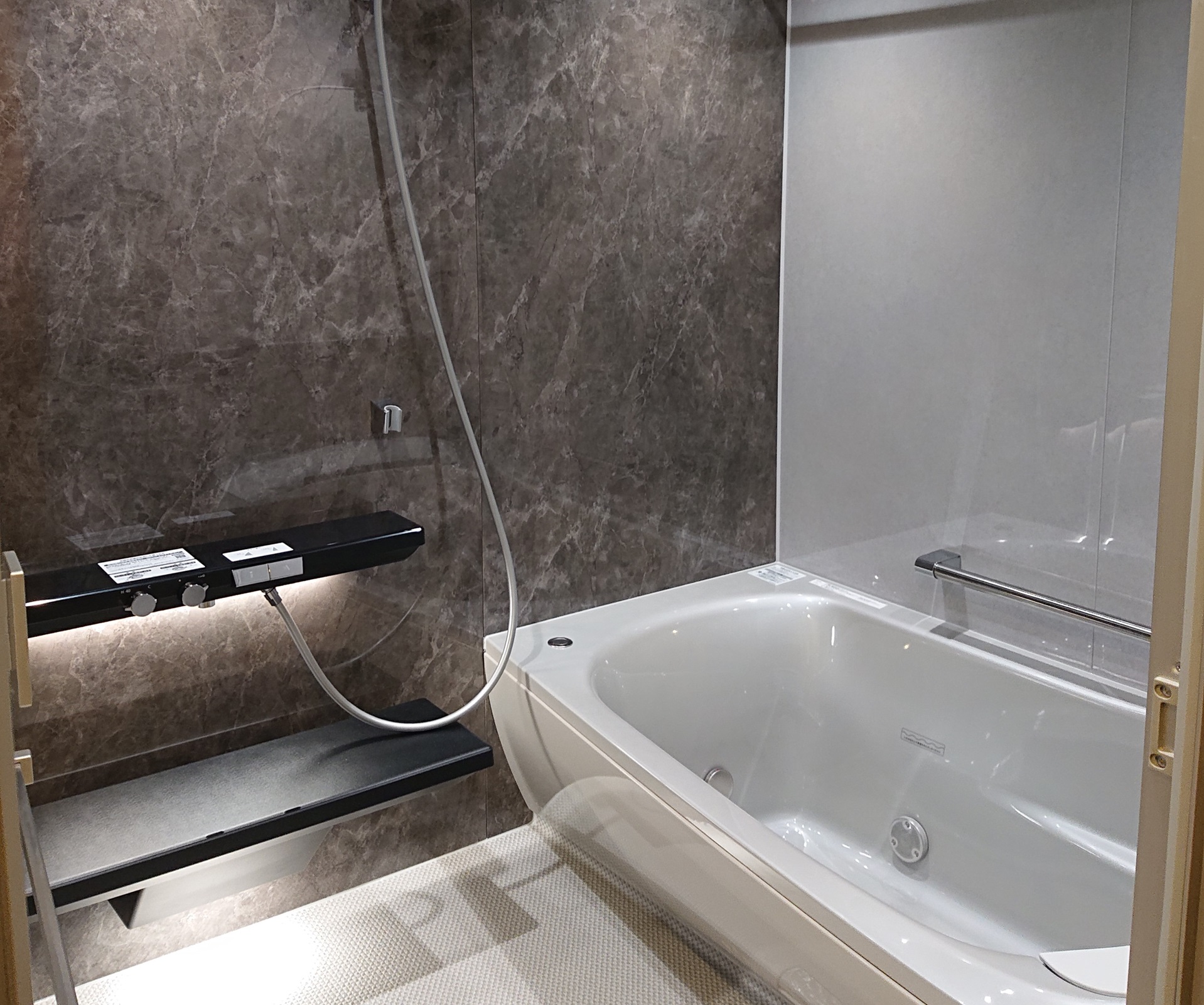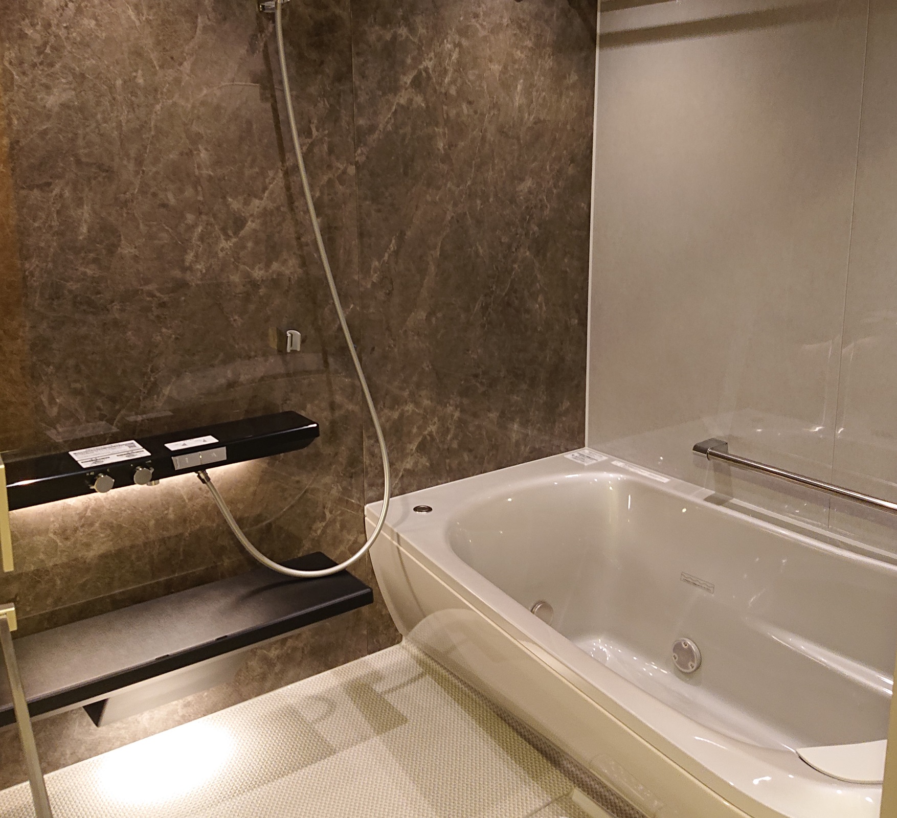 楽湯ありのシンラにして、調光調色システムと床ワイパーをオプションで付けました。