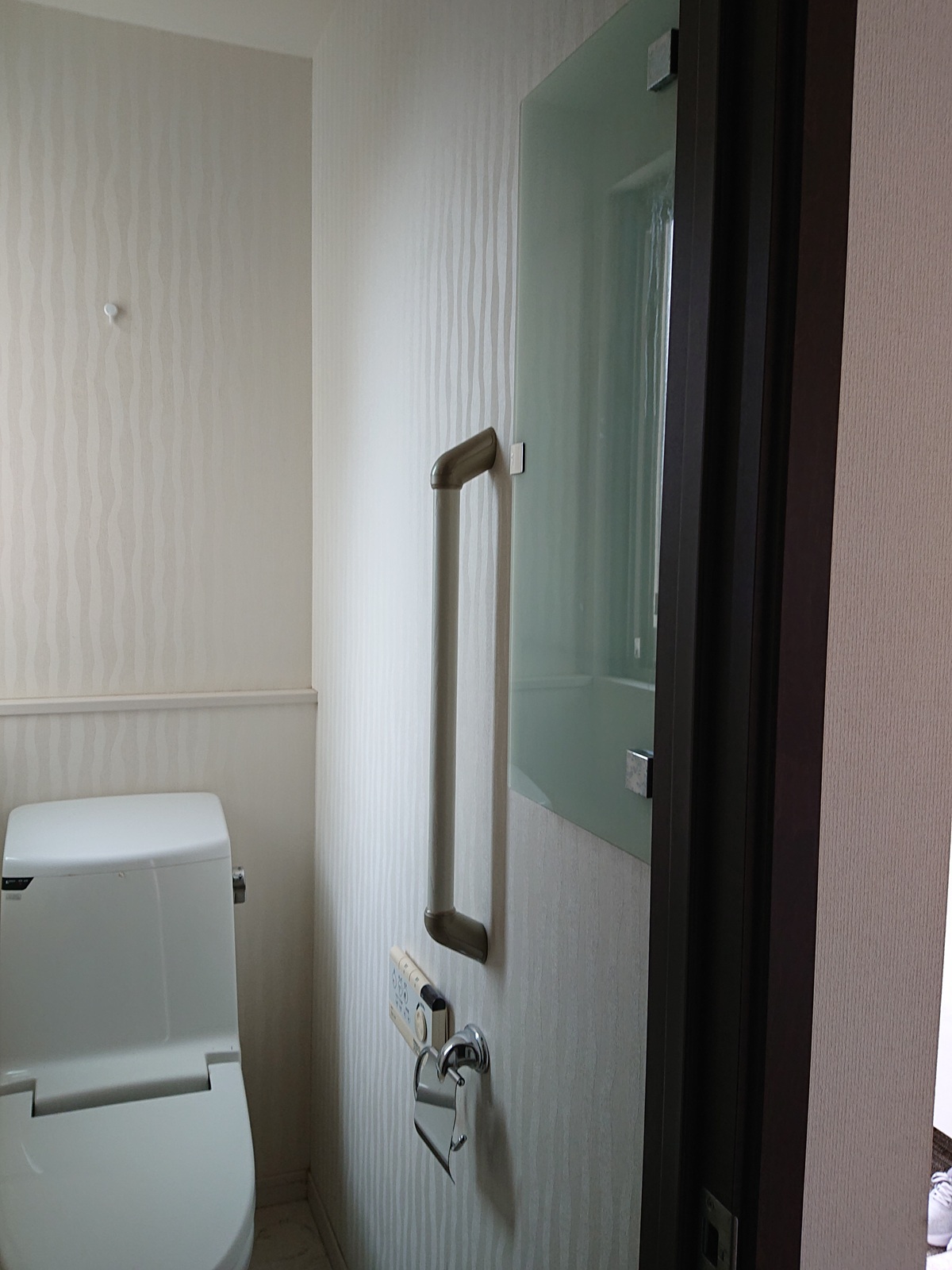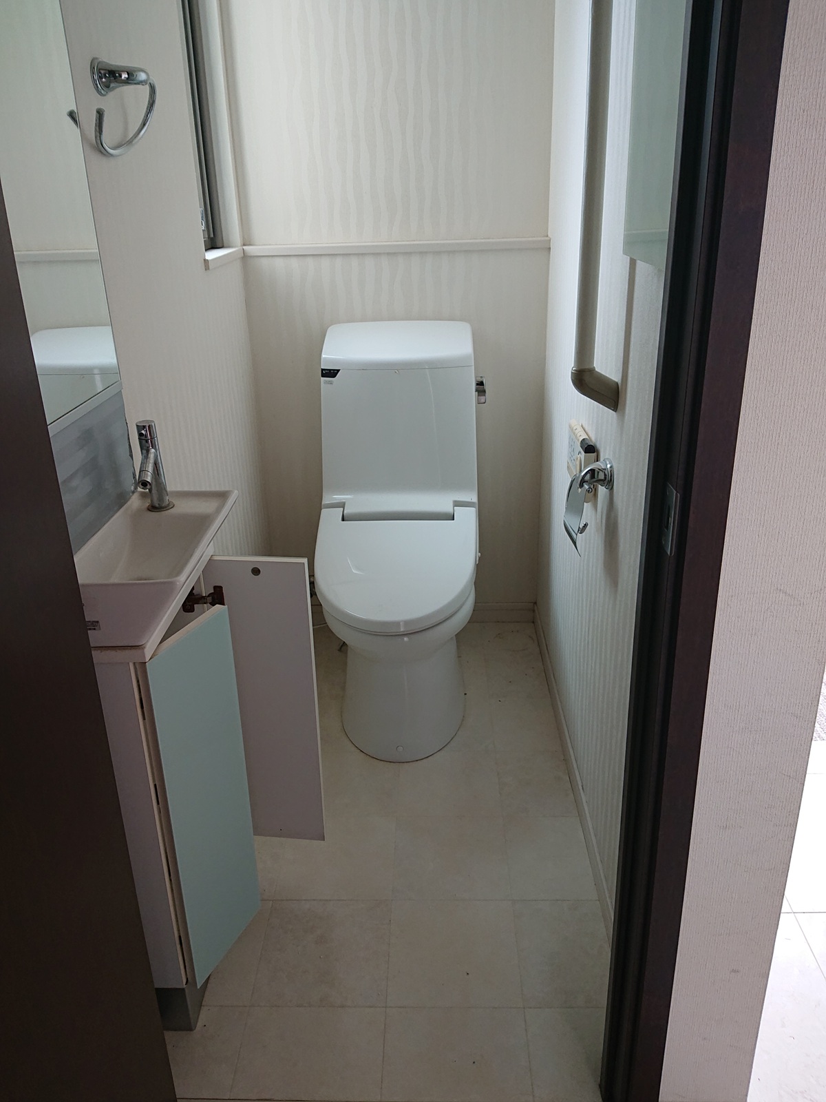 壁紙よ床クッションフロアも張り替えて全体的に明るく綺麗なトイレになりました。