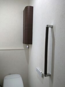 そのため、埋込収納は撤去して塞ぎ補修をし、トイレットペーパーをしっかり収納できるキャビネットを新しく設置したました。