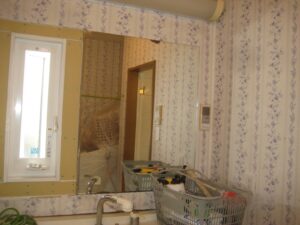 奥の壁は水撥ねにより壁紙が若干劣化していました。