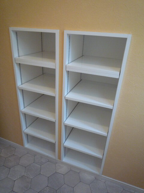洗面所の壁に埋込収納を新たに作りました。
