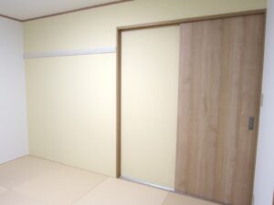出入口は洋風の引戸になりました。戸襖より軽い力で開閉でき、開閉音も静かです。