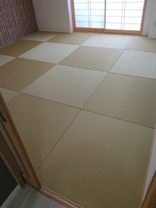一般的な畳よりも耐久性があり、カビに強く、変色ほぼなし、拭き掃除ができます。