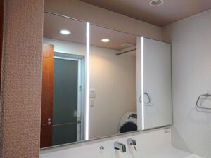 大きいサイズの洗面台交換を検討されている方は、鏡の事例文で注意事項を記載していますのでぜひ参考になさってください。